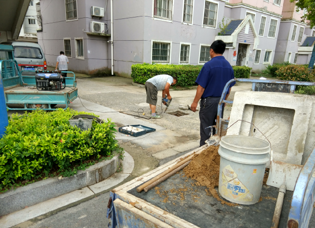 今天早晨6點40分,筆者看到,就有兩位師傅帶著修理工具和材料來到了窨井的損壞現場,動作麻利地進行程序化的修理修理工作。