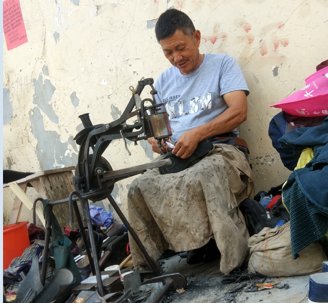 “葛師傅,我家孫女的鞋子破了,能否請你現在就弄,我還有急事。”9月22日下午,筆者看到有一位婦女用自行車拖著一個小女孩來到了葛華的修鞋攤前說。