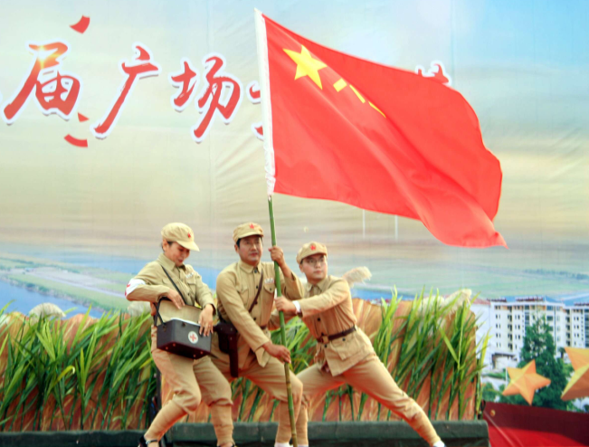 在眾多的節(jié)目中,當(dāng)天曾獲得“江蘇農(nóng)墾第二屆文藝匯演大賽” 原創(chuàng)作品一等獎的的《奮斗的音符》最引人注目,因淮海農(nóng)場有限公司的前身部隊——中國人民解放軍步兵第102師曾經(jīng)參加過著名的淮海戰(zhàn)役。《奮斗的音符》中有一段司號員吹響向敵人發(fā)起沖鋒的沖鋒號。在沖鋒號的指引下,102師指戰(zhàn)員以排山倒海之勢,向敵人陣地發(fā)起了沖鋒,再現(xiàn)淮海前身部隊102師將士在淮海戰(zhàn)役戰(zhàn)場上沖鋒陷陣、英雄殺敵的場景。