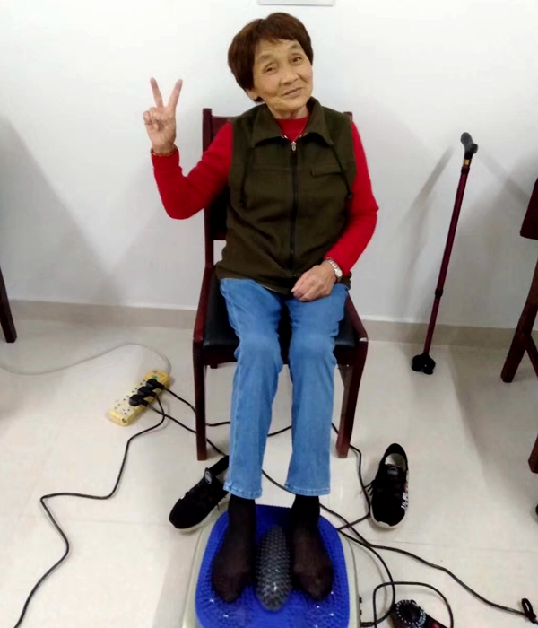 “董爹爹,你快來(lái)試試這個(gè)足底按摩儀,很舒服哦!”姚奶奶呼喚著老朋友,你一言我一語(yǔ)地交流著體驗(yàn)感受,于是便留下了姚奶奶比著“耶”,董爹爹豎起大拇指的生動(dòng)照片。