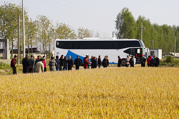 在場頭,老干部們饒有興致地觀看了臨時儲存囤,夸贊新洋創新能力強,科研技術好。“這真是個好點子,減輕了場頭運轉壓力,提高了工作效率!”老干部們豎起大拇指。在水稻收割現場,一片片金黃色稻田映入眼簾,大型聯合收割機凱斯7088在田野里來回穿梭,老干部們說:“現在機械化程度這么高,收割地又快又得干凈!”在秋播現場,一臺裝有GPS衛星定位導航系統的正反旋播種機用筆直的溝壑勾勒出現代農業的美麗畫卷,老干部們暢談過往,感嘆現代科技給新洋農業生產帶來的變化。