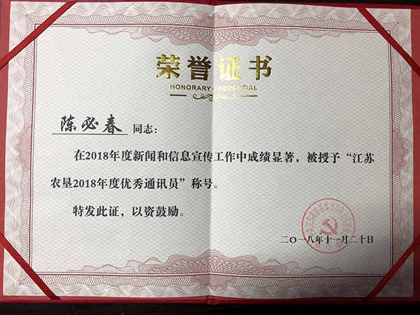 日前,江蘇農墾2018年度廣播電視“好新聞”、優秀網站、微信公眾號評比和優秀通訊員表彰會在南京舉行。新洋農場有限公司網站被評為2018年度優秀網站、《印象新洋》榮獲品牌形象宣傳片三等獎,兩名同志被授予“2018年度江蘇農墾優秀通訊員稱號”。