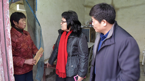 張徐居委會(huì)居民駱德軍因患腦瘤做過兩次手術(shù),現(xiàn)還在醫(yī)院接受治療,其妻石紅桃在家還要照顧已達(dá)百歲高齡的老母親,一家人的生活因?yàn)椴∧в绊戯@得十分困難。劉克英在向她家送上慰問金和米油等慰問品的基礎(chǔ)上,還與她熱情擁抱并親切地與她拉起了家常,仔細(xì)詢問了駱德軍的病情和治療情況,希望她繼續(xù)悉心照顧好老人和病人,在各級(jí)組織的關(guān)心幫助下,早日戰(zhàn)勝病魔與困難,過上美好幸福的生活。