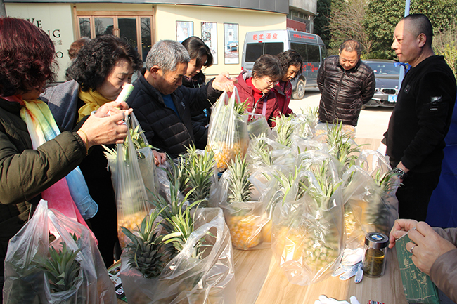 各攤位前人頭攢動(dòng),爭(zhēng)相搶購(gòu),“老知青”香粳米、葵王油、海天系列產(chǎn)品、江心沙皓明系列大米、菠蘿最搶手,人們買(mǎi)米、買(mǎi)油、買(mǎi)菠蘿,拎著沉甸甸的收獲,臉上笑開(kāi)了花。