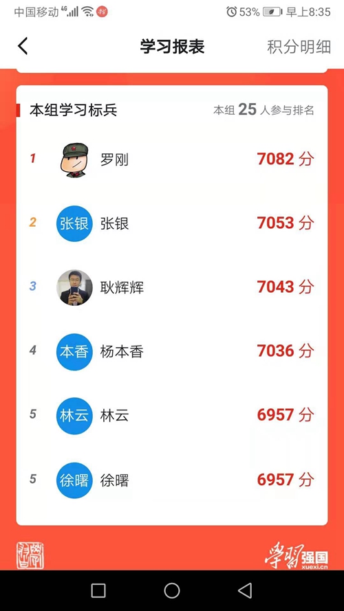 強化領導,提高政治站位。成立推進“學習強國”工作領導小組,由公司黨委書記任組長,各單位、部門以及黨總支部負責人任成員,強化措施,明確責任,統籌推進學習強國注冊工作。迅速建立組織架構,成立了公司25個黨組織在內的學習管理組,形成了縱向到底、橫向到邊的學習組織網格。截止2019年7月5日,已有10多名黨員學習強國分數達到了7000分以上。
