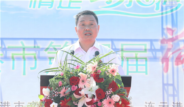 連云港市副市長陳書軍宣布連云港市第四屆荷花節(jié)開幕,并與省農(nóng)墾集團總會計師劉克英、高新區(qū)黨工委書記陳佑龍、市文化廣電和旅游局副局長柏銀枝、市自然資源和規(guī)劃局局長孔令泰、農(nóng)場公司黨委書記劉衛(wèi)華共同為開幕式推動啟動桿,第四屆連云港市荷花節(jié)正式開幕。