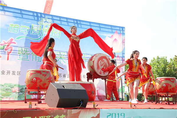 荷之形,亭亭玉立、搖曳多姿,代表著生態(tài)自然、秀外慧中的云臺形象。緊接著荷文化文藝匯演在精彩的開場鼓《盛世鼓舞》節(jié)目后正式拉開帷幕。本次荷花節(jié)的宣傳亮點是開通了連云港手機臺全程直播,吸引了3萬多名游客在網(wǎng)上收看荷花節(jié)直播盛況。開幕式還特別邀請了連云港市廣播電視臺著名主持人李華參與主持,音樂人王從鍵和交通廣播主持人小海分別送上了動聽的歌曲。接下來,大家一起欣賞了淮海戲折子戲《回娘家》、非遺項目海州五大宮調(diào)《一輪明月》、武術(shù)表演《臥虎藏龍》、農(nóng)場公司舞蹈《花樣年華》等節(jié)目,贏得了現(xiàn)場嘉賓及游客的陣陣掌聲。演出現(xiàn)場還穿插了紅包雨、幸運游客抽獎等互動環(huán)節(jié),吸引了眾多游客熱情參與,現(xiàn)場氛圍十分活躍。
