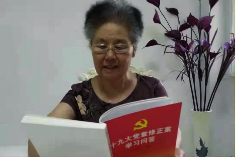 “感恩新時(shí)代,養(yǎng)老金已連續(xù)15年遞增,讓我們生活無(wú)憂無(wú)慮。現(xiàn)在就是要鍛煉好身體,健康地活著,看到祖國(guó)越來(lái)越富強(qiáng),人民越來(lái)越幸福!”吳文英笑著說(shuō)。圖為吳文英在學(xué)習(xí)。