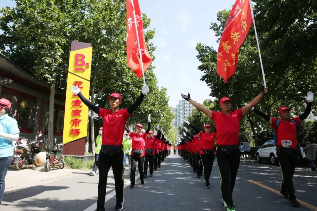本次活動旨在進一步提高黨政機關(guān)、企事業(yè)單位和民間健步團隊活動的組織性、生動性、多樣性和有效性,組織動員廣大市民在文明家園建設(shè)大潮中亮身份、舉旗幟、樹形象、展風(fēng)采,以實際行動為全國文明城市創(chuàng)建助力加分。上午九時,隨著發(fā)令槍響,比賽正式開始。東辛代表團縱隊列隊,整裝待發(fā),參賽隊員們統(tǒng)一著裝、隊列整齊、步調(diào)一致,昂首挺胸、闊步前行,整齊劃一的步伐贏得了新聞媒體記者和現(xiàn)場觀眾的競相拍照,隊員們矯健的身影為初秋的石棚山增添了一份熱情與活力,展示出了東辛健步隊員們英姿颯爽的風(fēng)采。此次活動緩解了廣大職工緊張而忙碌的工作壓力,進一步提高了職工的健康水平和身體素質(zhì),掀起了東辛新一輪全民科學(xué)健身的新熱潮。