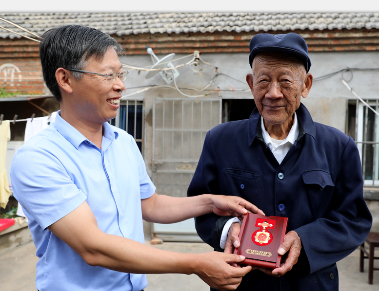 黃海農場公司黨委書記賀在銳到離休老干部涂建華、約田家中看望他們,向老同志致以節日問候,為他們佩戴上“慶祝中華人民共和國成立70周年”紀念章,由衷感謝他們在不同歷史時期為黨和人民,為黃海經濟社會發展作出的貢獻,并與他們親切交談,詳細了解老同志的生活起居和健康情況,囑咐老人要保重身體,祝福老人健康長壽。