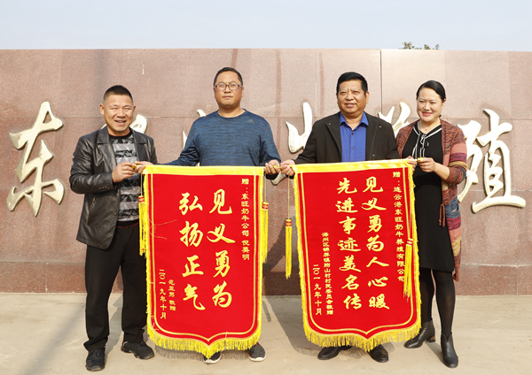 昏迷女子被拖出車廂后,來到岸邊,倪英明按照東辛每月安全例會上學習到的應急救援知識,一只手扶起女子的頭部,另一只手為其掐人中,幫其恢復意識。林濤則在一旁撥打120、110求助。經過倪英明和林濤一系列的急救,昏迷女子逐漸醒來,恢復了意識。隨后120和110趕到,對女子和事故作進一步的檢查和了解。見現場已無特殊情況,倪英明和林濤默默離開了現場。倪英明回到家中才發現,因急于救人,放在衣服口袋中的手機已浸水損壞,但他并未聲張。第二天照樣正常上班,未曾向同事提起此事。直到近日,海州區錦屏鎮朐山村村委員會主任藤步明、村委員會副書記曾兆蘭代表事故女司機送來錦旗,倪英明見義勇為,勇救落水女子的事跡才被公司領導知曉并在公司流傳開來。