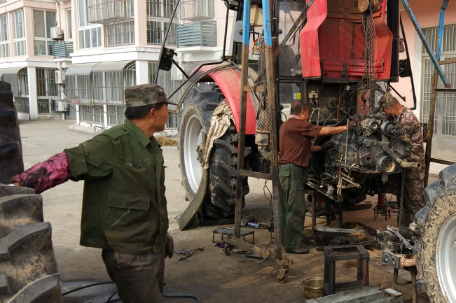 今年“三秋”開(kāi)始以來(lái),為保障農(nóng)機(jī)更好地服務(wù)農(nóng)業(yè),該農(nóng)機(jī)修理所以提供配件和搶抓修理為主業(yè),既上門或到田間地頭進(jìn)行搶修,又接受廣大農(nóng)機(jī)戶上門修理農(nóng)機(jī)業(yè)務(wù),同時(shí)也無(wú)償?shù)貫閺V大農(nóng)機(jī)戶提供技術(shù)咨詢、電話醫(yī)生等服務(wù),以站在農(nóng)機(jī)戶的角度上思考問(wèn)題,盡可能地縮短農(nóng)機(jī)手等待農(nóng)機(jī)配件或是修理的時(shí)間,千方百計(jì)并加班加點(diǎn)地為廣大農(nóng)機(jī)戶提供方便。為節(jié)約時(shí)間,他們的中晚餐全交由快餐店來(lái)經(jīng)營(yíng),夜晚更是加班加點(diǎn)地?fù)]汗如雨搶趕進(jìn)度。他們正是以誠(chéng)信經(jīng)營(yíng)的理念和優(yōu)質(zhì)的服務(wù)質(zhì)量,受到了農(nóng)場(chǎng)有限公司及周邊廣大農(nóng)機(jī)戶的支持和歡迎。圖為李貴等四兄弟在搶修農(nóng)機(jī)時(shí)的鏡頭。