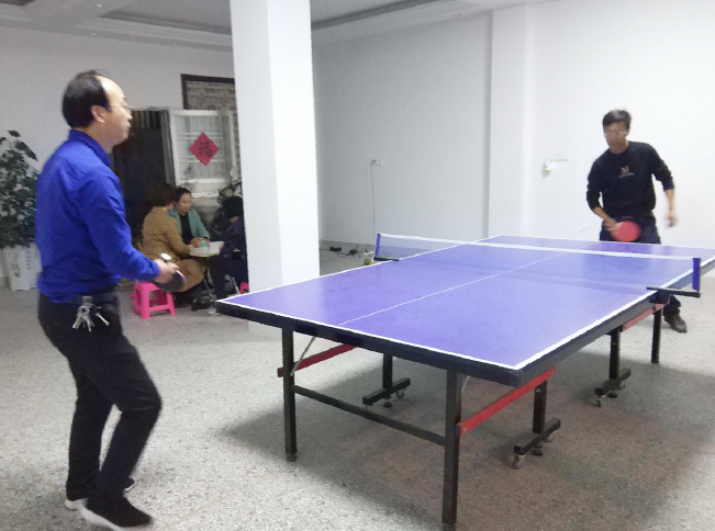 對(duì)于淮海農(nóng)場社區(qū)一些喜歡打乒乓球的職工居民來說,他們是幸運(yùn)的,因?yàn)?/span>在農(nóng)場社區(qū),除了職工文化活動(dòng)中心、城東居委會(huì)、醫(yī)院等單位有乒乓球桌外,在農(nóng)場公司財(cái)務(wù)科上班的劉平家中,也有個(gè)“乒乓球館”,隨時(shí)隨地免費(fèi)開放,誰想去打都可以。