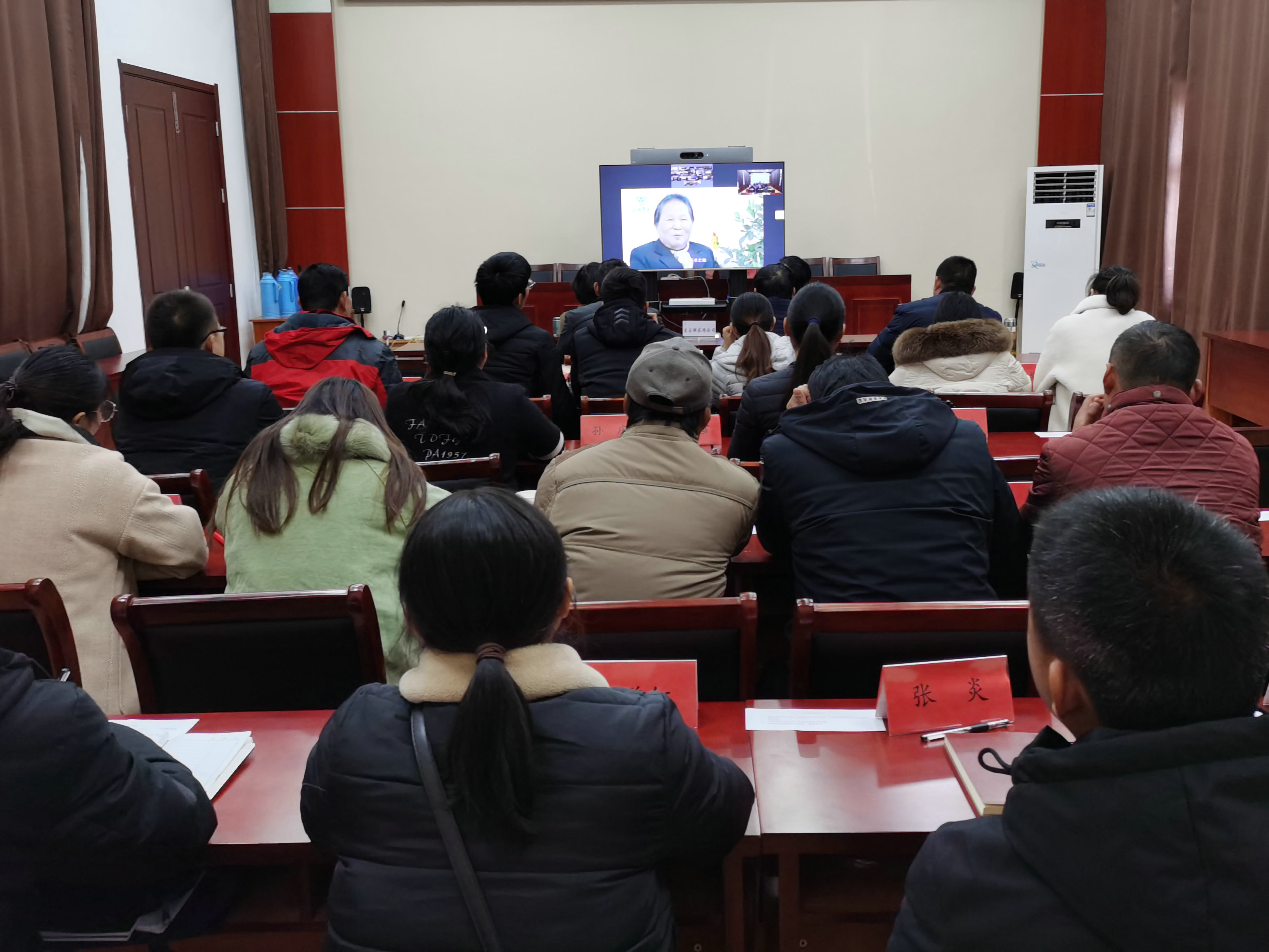 上午8點50,農場公司黨委書記李乾清、紀委書記王芹、黨委工作部相關人員和基層信息員29人準時到達了視頻會場。