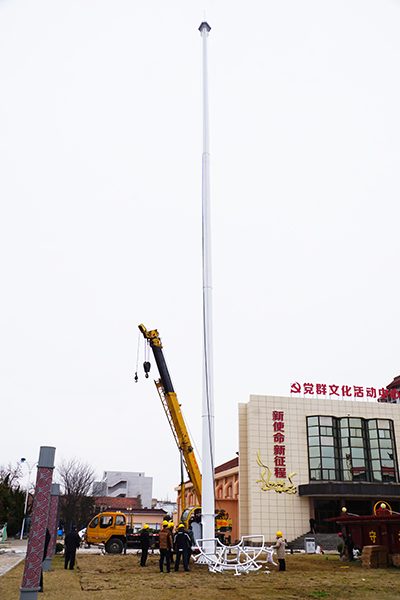 1月10日上午9時(shí)30分,在新洋農(nóng)場(chǎng)黨建文化廣場(chǎng),塔吊車將一根碩大的高桿燈吊起、嵌入,再由施工人員固定、調(diào)試。下午4時(shí)30分,“安裝、調(diào)直、測(cè)試完畢!”隨著工程師大聲宣布,LED高桿燈安裝完畢,隨即,高桿燈調(diào)試成功的喜訊在農(nóng)場(chǎng)干群中迅速傳開(kāi),大家為新洋黨委這一亮化民生工程紛紛點(diǎn)贊。