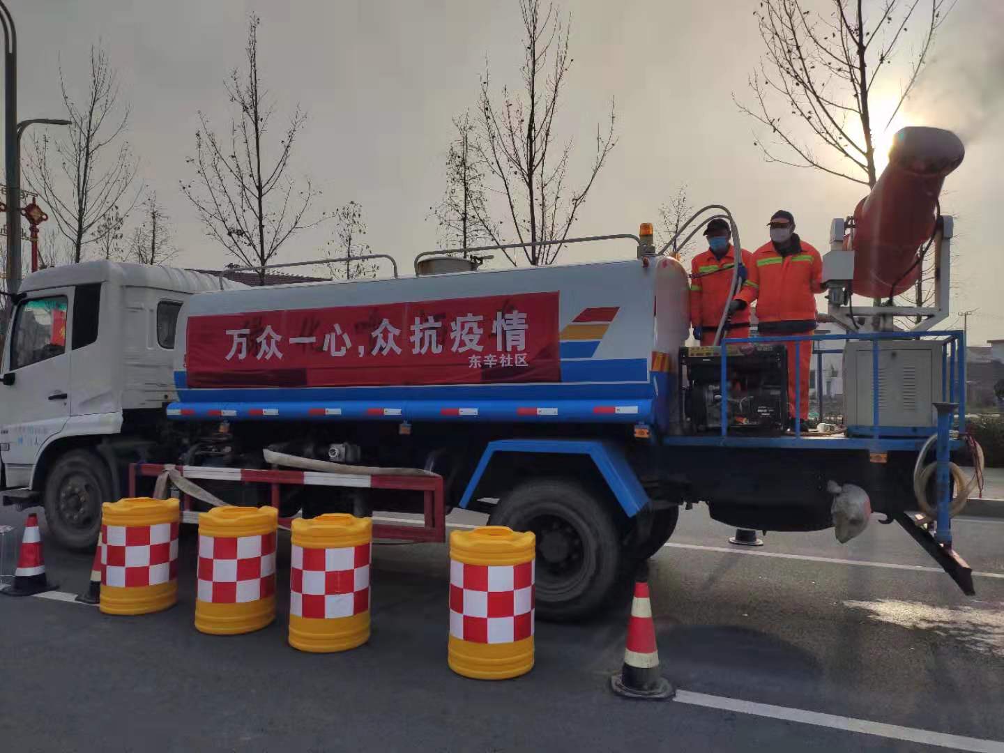 疫情就是命令,防控就是責(zé)任。東辛社區(qū)114名環(huán)衛(wèi)人員無懼炎寒,不畏風(fēng)雪,每天早5點(diǎn)到晚9點(diǎn)對主次干道、商業(yè)街區(qū)、居民小區(qū)、農(nóng)貿(mào)市場、公園、廣場等人員密集場所、重點(diǎn)區(qū)域開展清掃、沖洗、人工撿拾的立體化環(huán)衛(wèi)保潔作業(yè),加大道路及公共區(qū)域設(shè)置的果皮箱、垃圾桶的清掏頻次,環(huán)衛(wèi)車隊(duì)和生活垃圾中轉(zhuǎn)站增加垃圾清運(yùn)頻率,嚴(yán)格做到日產(chǎn)日清,及時(shí)對公廁、垃圾清運(yùn)、轉(zhuǎn)運(yùn)、垃圾運(yùn)輸車等公共市政設(shè)施、公共區(qū)域進(jìn)行防疫消殺、通風(fēng)工作,在城鎮(zhèn)街區(qū)醒目位置放置廢棄口罩專用容器,專車專人清運(yùn),送至垃圾焚燒廠進(jìn)行無害化處理,減少二次污染。同時(shí)督促環(huán)衛(wèi)人員按要求做好自身防護(hù)工作,每天對環(huán)衛(wèi)人員有無發(fā)燒、發(fā)熱、咳嗽等癥狀進(jìn)行篩查,并建檔立卡,保持隊(duì)伍戰(zhàn)斗力,全力助力打好打贏疫情防控硬仗。