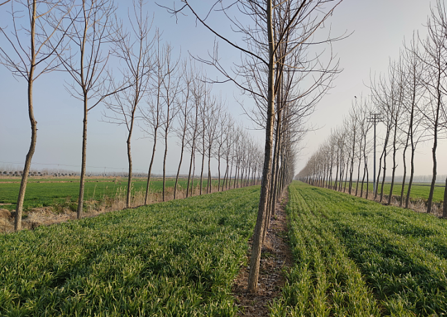 走在江蘇農(nóng)墾淮海農(nóng)場廣袤的田野上,我們看到許多鑲嵌在田間林網(wǎng)化的林下,一片片不輸于大田作物的綠色十分惹眼,踏進(jìn)一條條林地間,一棵棵粗壯的小麥苗連成一片,在狹窄的林地間一路遠(yuǎn)去,成就了農(nóng)場許多林管人員的增收致富夢(mèng)想———