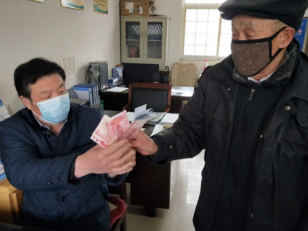 2月26日,家住新洋城西轄區的84歲退役軍人、退休干部馬善國夫婦通過居委會,向湖北武漢捐款600元,助力打贏疫情防控阻擊戰。