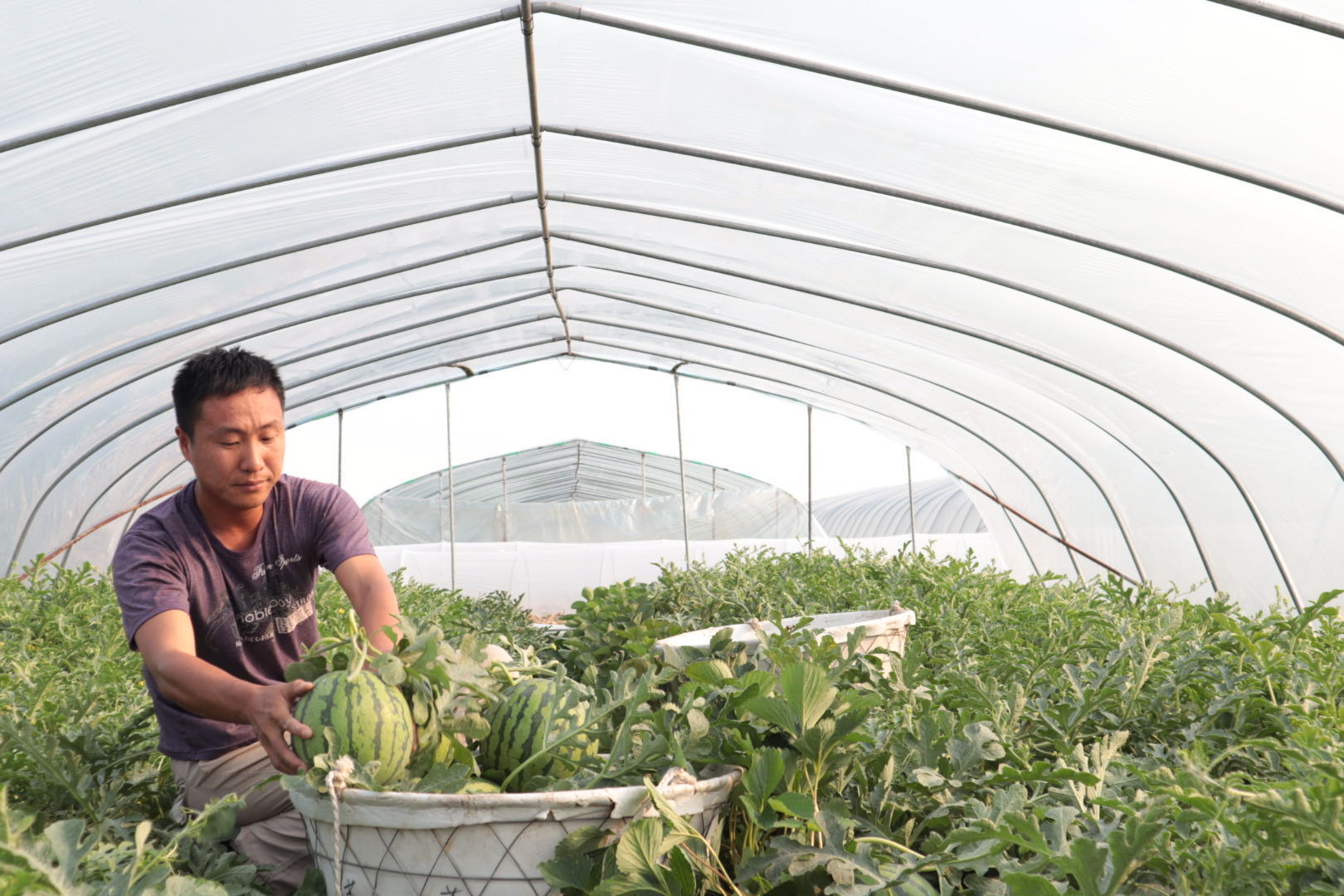 工作幾年后,看著父母日漸衰老的面龐、斑白的鬢角,蘇穩杰決定挑起家中重擔,跟隨父親蘇紅健學習大棚西瓜種植技術,從父親的手中接過大棚西瓜種植的接力棒。