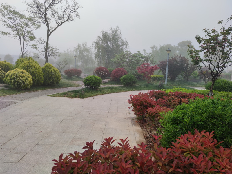 立夏剛過,淮海公園的植被樹木花卉,已經(jīng)是萬花齊放,形成了這方仙境的嬌好妝容。清晨邁步在淮海公園那曲折的小道上,白色的輕霧彌漫開來,如縷如煙,仿佛“仙境”。漫步其間參與健身的職工居民笑意盎然,享受著大自然的這份舒適和由心底間涌出來的愜意。