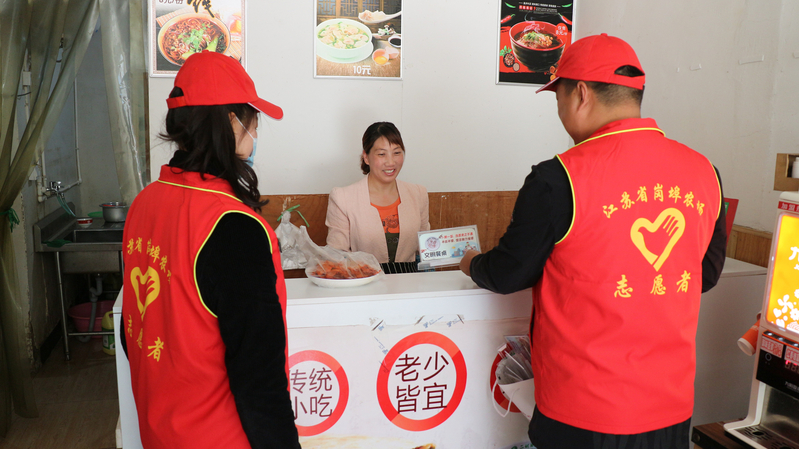 活動中,志愿者們分為5個小組,分片對場域內餐飲行業門店進行“文明餐桌”工作宣傳,積極宣傳餐桌文明知識、倡導餐桌文明行為的良好風尚,提醒到店就餐的顧客就餐時不喧嘩、不打鬧,自覺養成珍惜糧食,不剩飯、不剩菜的良好習慣,倡導人們文明、安全、節儉用餐,追求科學、理性、健康的生活方式。