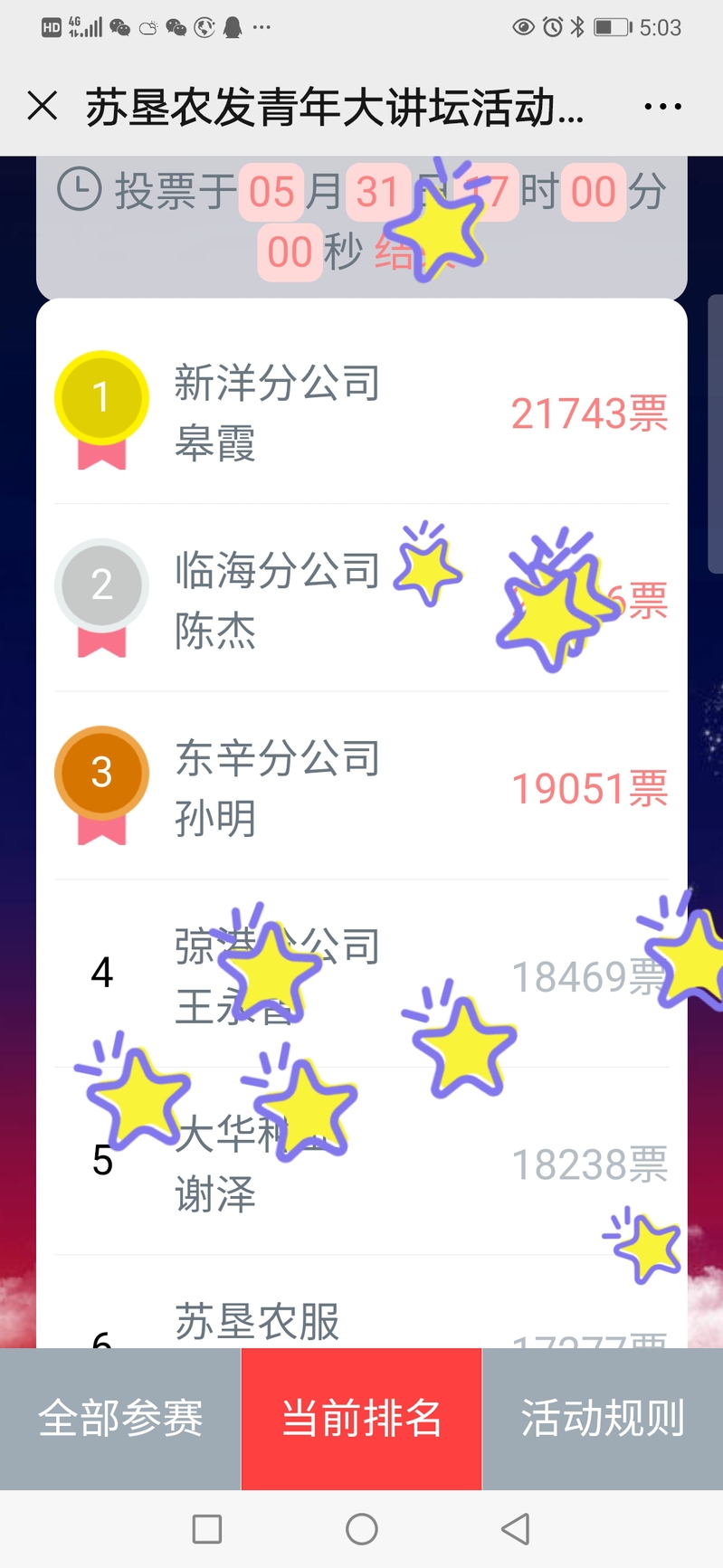 ?圖為蘇墾農發青年大講壇活動排名