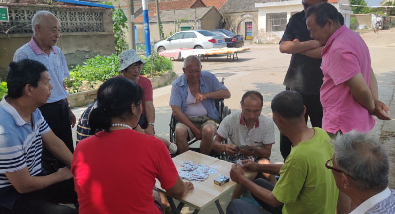 據(jù)悉,生活在淮海的退休職工就有近3000人,他們在退休前在各個崗位上打拼,為農(nóng)場的經(jīng)濟社會建設作出了重大的貢獻。如今他們退休了,也該他們到了享受的年紀了,于是這些老鄰居老朋友們,在陽光下的樹蔭中,或獨處著看書報、瀏覽手機上的新聞趣事;或夫妻倆及兒女們談論著家事;或三五一群、四五一堆聚在一起聊天、打牌、下棋……怡然自得心情舒暢地享受著夏日清涼的蔭涼,一起享受著午前午后的休閑時光。有的老年人雖然不會玩,但他們喜歡湊熱鬧,在交談中度過了享受著的一天。