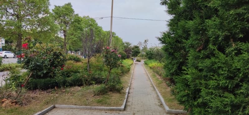 總長(zhǎng)1公里的以香樟樹(shù)、紫薇、石楠等上中下融合一體的淮海路是路邊公園區(qū)的重要一景。淮海路緊密聯(lián)結(jié)職工休閑體育運(yùn)動(dòng)廣場(chǎng)、文化廣場(chǎng)、淮海公園,沿淮海路北側(cè)與微型公園間,建成了3米左右的人行步道,與主路上的香樟樹(shù)、微型公園中一路沿伸出來(lái)的合歡樹(shù),形成了林下綠鏈,讓大家沿著樹(shù)蔭走,可以起到較好的遮陽(yáng)和觀賞效果。