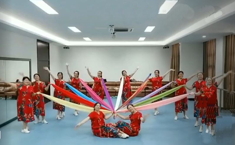 無論是在淮海公園前的夜間長廊廣場上,還是在農(nóng)場職工文化活動中心的舞蹈室內(nèi),為了展示她們舞蹈隊的風(fēng)采,她們通過精心編排舞蹈,把生活中的喜悅、家庭的和諧、社區(qū)的溫暖,紛紛借助唯美舞蹈的形式展示出來。為了讓舞蹈達(dá)到整齊劃一,讓健康時尚的健身操表演更具活力,舞蹈隊員們時而身著鮮艷的服裝,在行進(jìn)的舞步中變幻造型;時而紅裝素裹,亭亭玉立在鏡面似的舞蹈室之中;時而擺弄著定格似的舞姿,宛若一幅靜止了似的風(fēng)景畫兒,讓現(xiàn)場的觀眾看了甚是喜愛。