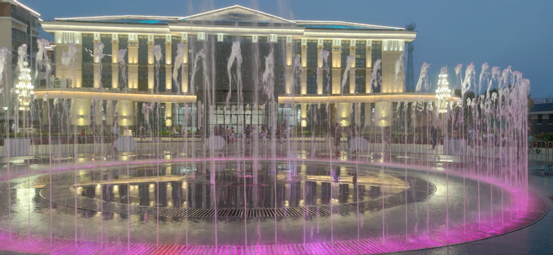 在淮海農場文化廣場中心區(qū)域的噴泉位上,每天傍晚時分,這里的音樂噴泉總是給農場的夜色增添了變幻著的迷人風景,能變換許多種造型的大型音樂噴泉,時而一柱沖天、時而萬馬奔騰、時而此起彼伏、時而柔性十足,并且音樂噴泉在周邊樓宇的燈光和職工居民舞蹈動作的映襯下更加唯美、更有動感、也更有了靈氣。每到夜晚,噴泉在音樂聲中翩翩起舞,色彩斑斕。受此噴泉吸引,農場職工居民喜歡在音樂噴泉旁載歌載舞,喜歡圍著音樂噴泉拍照留念。而這里更成為了孩子們追逐的天堂,通過近距離地欣賞音樂噴泉的美景。不同的需求、不同的美景、共同的快樂,讓大家在音樂噴泉的風姿中,度過一個又一個快樂的夜晚。