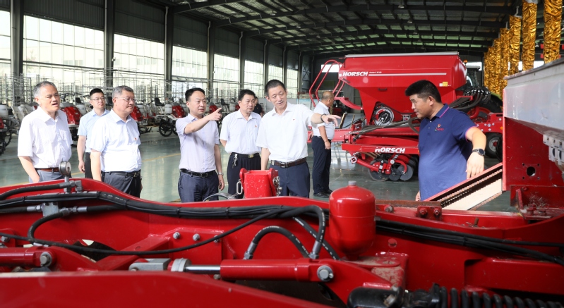 在認真聽取情況匯報后,劉耀武從改革發展、現代農業建設、農業對外合作、小城鎮綜合管理、民生事業建設、干部員工精神風貌等方面具體了解黃海情況。他說,黃海是墾區資源大場,工作面廣量大,班子團結擔當、產業基礎良好。特別是中德示范園為墾區機械化水平提升提供了有益探索,院士試驗基地為提升農業發展水平和農機綜合利用發揮了積極作用。夏糧總產達到10.6萬噸,不僅穩固了農業基本盤,夯實了全年農業基礎,還為龍頭企業作出了積極貢獻。