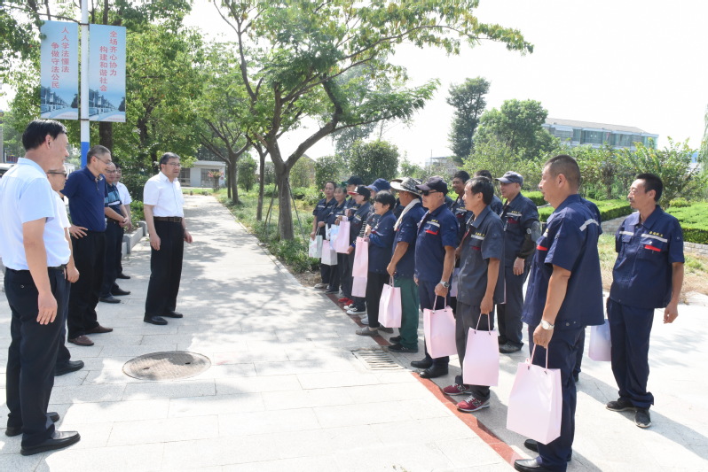 8月19日下午,集團(tuán)公司黨委委員、工會(huì)主席楊義林等一行到淮海農(nóng)場(chǎng)有限公司環(huán)衛(wèi)綠化管理所開展送清涼活動(dòng),向一直堅(jiān)守在烈日下的一線職工送上集團(tuán)公司工會(huì)的關(guān)心和清涼防護(hù)用品。淮海農(nóng)場(chǎng)有限公司領(lǐng)導(dǎo)單祥忠、王燦明、孫司正、孫國祥及部門負(fù)責(zé)人等一起參加了送清涼活動(dòng)。