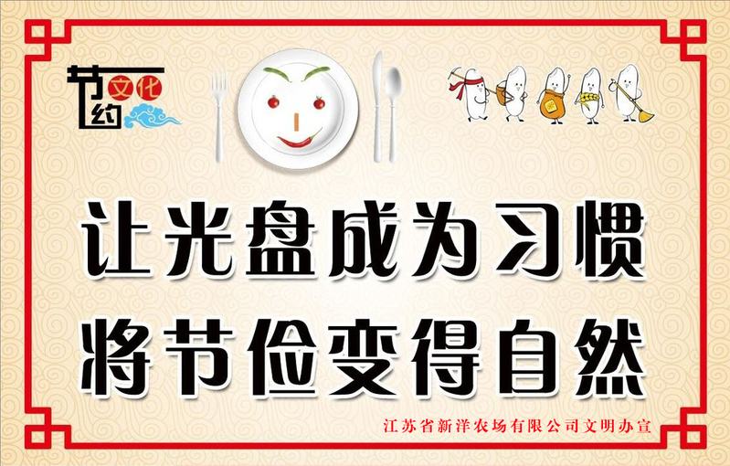 通過開展光盤行動,在全社會倡導文明用餐理念,培育健康文明的餐桌文化,凈化農場文明環境,形成文明用餐、節儉惜福的良好社會風氣。