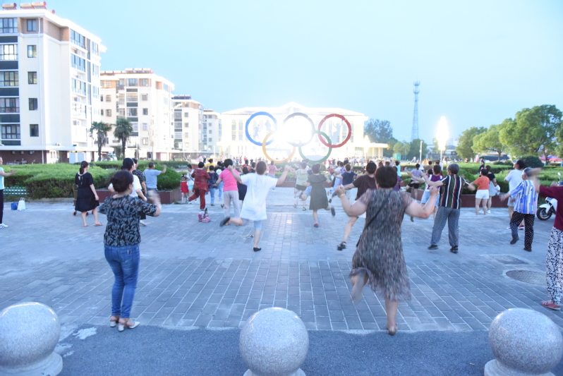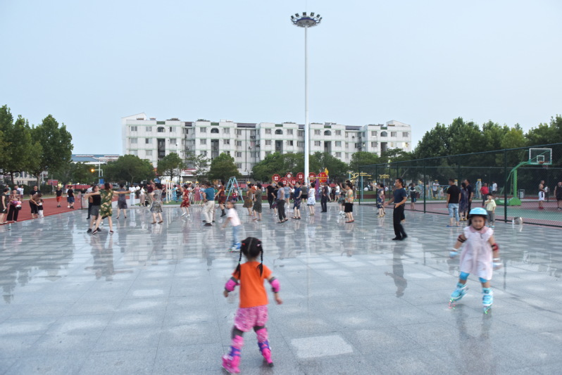 每天傍晚,在淮海農(nóng)場文化廣場和職工休閑體育運動廣場上,就是擁進(jìn)了眾多的周邊職工居民和地方群眾,他們共同來到廣場上,進(jìn)行跳舞、散步、跑步、器材運動、籃球、舞蹈等適合自身需求的體育運動,讓農(nóng)場的兩大廣場變成了歡樂的海洋。我們看到,有以中老年舞蹈愛好者匯集于此,踏著悅耳的節(jié)拍跳起歡快的廣場舞的;有年輕一點的職工居民,在爽滑的舞蹈池上,跳著專業(yè)的交誼舞的;也有的職工居民帶著老人或是小孩,在廣場上散步游玩的。他們各自的身姿和熱烈的氣氛引來觀眾欽羨的目光。特別是每天上演的廣場舞健身操,在廣場的四五處區(qū)域不同上演,成為淮海夜晚最美的風(fēng)景。廣場舞健身操的普及,讓不少路人也愉快地加入其中載歌載舞,隊伍逐步擴(kuò)大,讓更多的職工居民融入到農(nóng)場健康體育文化之中,享受著我運動、我健身、我快樂的體育運動氛圍。圖為職工居民在廣場上運動的姿態(tài)和身影。