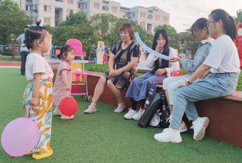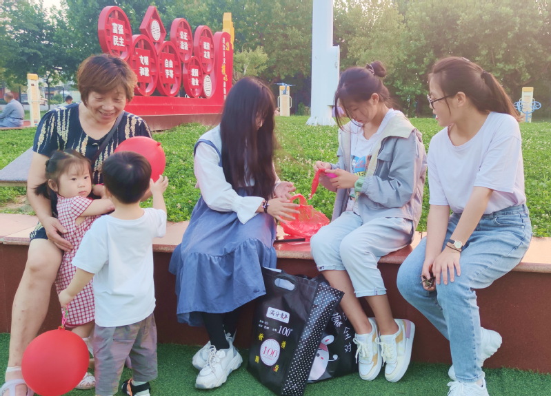 當氣球飄蕩之時,立即就有孩子奔跑到這些姐姐們的面前小心地觀看,還有的孩子拉著媽媽奶奶的手,來到這里看熱鬧,也想要一只屬于自己的氣球玩具。而來自學習的小姐姐們,對前來觀看的寶寶們都能滿足他們的愿望,在奉獻愛心的同時,也收獲著快樂,并在與寶寶和其家人的交流中,鍛煉與社會各界的交際能力和自己的團隊合作意識,讓學生們過上了一個不一樣的社會交往實踐課。