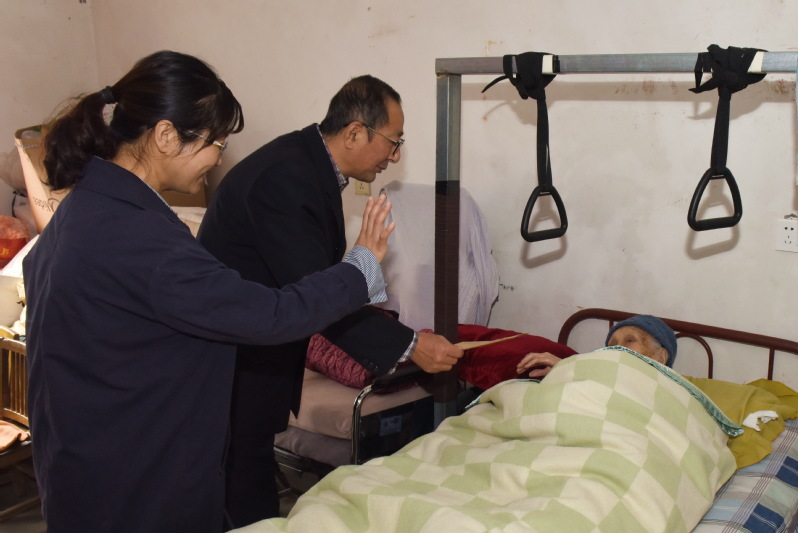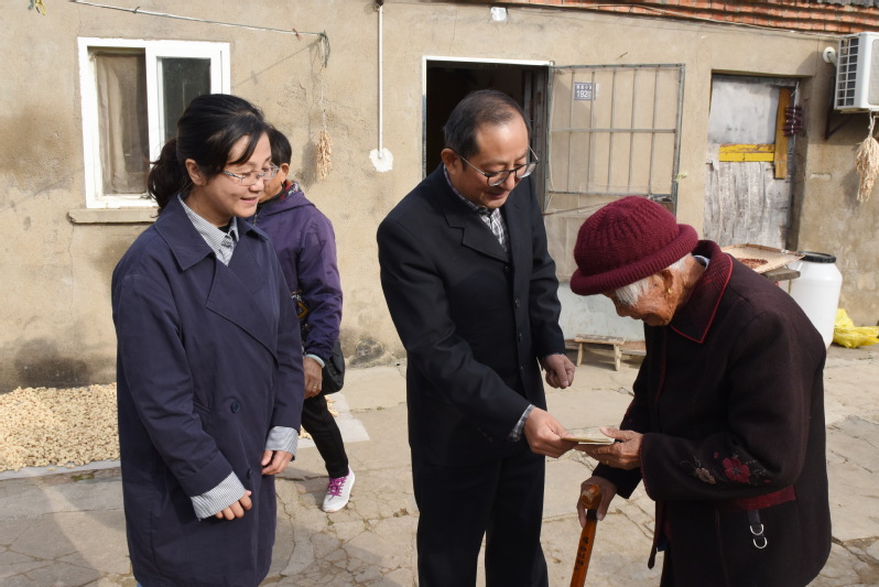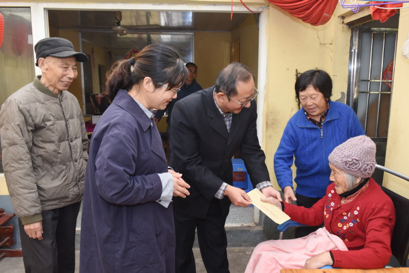 情暖重陽,愛意必達。前天是我國傳統節日“重陽節”,也是第八個“老年節”,10月27日上午,淮海農場工會和社區老齡委負責人等人員一起,深入轄區走訪看望農場健在的3位百歲老人,并為老人送上慰問金和節日的問候。