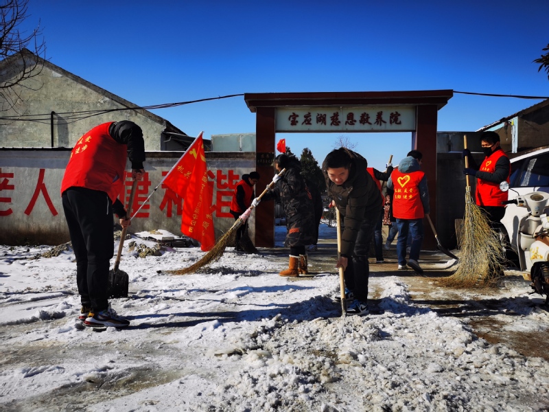 12月31日,寶應(yīng)湖農(nóng)場慈恩敬養(yǎng)院大門外,一群身著紅馬夾的志愿者揮舞著鐵鍬、掃帚,忙碌著清掃積雪,成為雪后初晴下的一道亮麗風(fēng)景。這是寶應(yīng)湖分公司機關(guān)黨支部組織志愿者開展志愿服務(wù)活動,弘揚崇德向善精神。