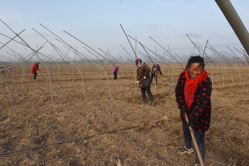 大面積連片在淮海進(jìn)行的西瓜種植,不僅讓懷揣技術(shù)、經(jīng)驗(yàn)、資金和市場的淅江瓜農(nóng)借助農(nóng)場小城鎮(zhèn)的集聚效應(yīng),借助充足的勞動(dòng)力獲得增收的紅利,同時(shí)西瓜地大棚搭建及今后棚內(nèi)的各種管理措施,可以較好地帶動(dòng)農(nóng)場的職工居民和周邊農(nóng)村的群眾,借西瓜種植基地的繁育種植和市場銷售,而實(shí)現(xiàn)他們在“家門口”打工創(chuàng)收的夢想,有力地帶動(dòng)了廣大職工居民和農(nóng)村群眾借農(nóng)機(jī)和勞務(wù)來實(shí)現(xiàn)增收。圖為職工群眾在大棚基地里進(jìn)行勞作時(shí)的鏡頭。