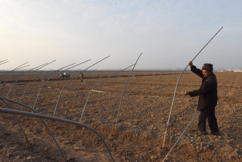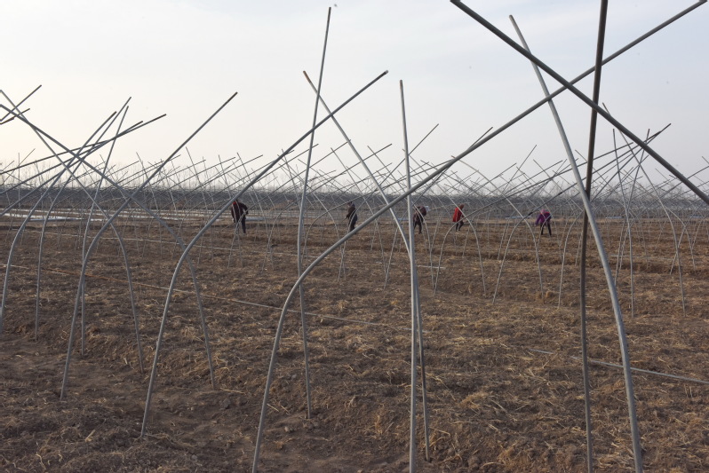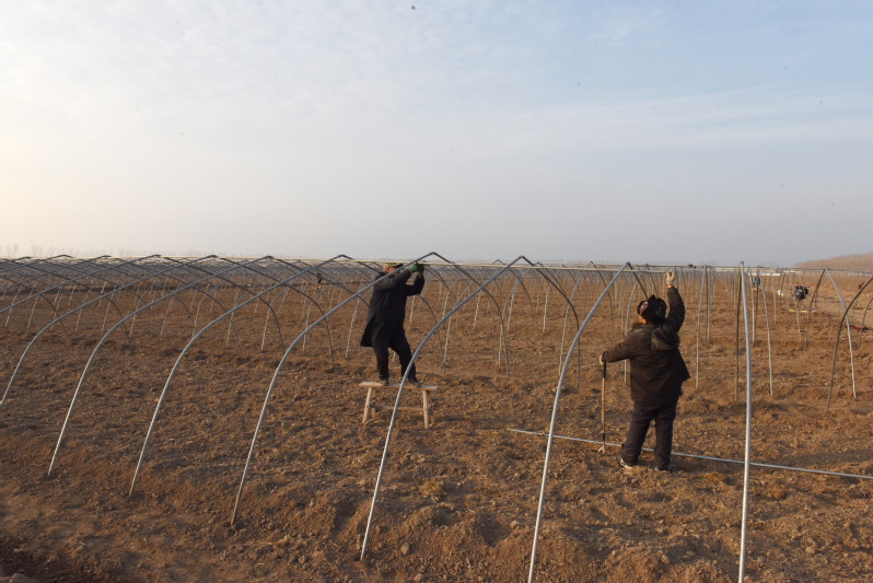 1月20日,筆者在淮海農(nóng)場五分場社區(qū)3000多畝西瓜大棚種植基地里看到,眾多的農(nóng)場職工居民和周邊農(nóng)村的群眾,散落在西瓜種植基地內(nèi),正在熱火朝天地進(jìn)行西瓜大棚種植的棚架搭建、土地平整、機(jī)械操作、鋪膜蓋棚等各種勞務(wù)用工工作,這成為冬日里一道繁忙的風(fēng)景線。
