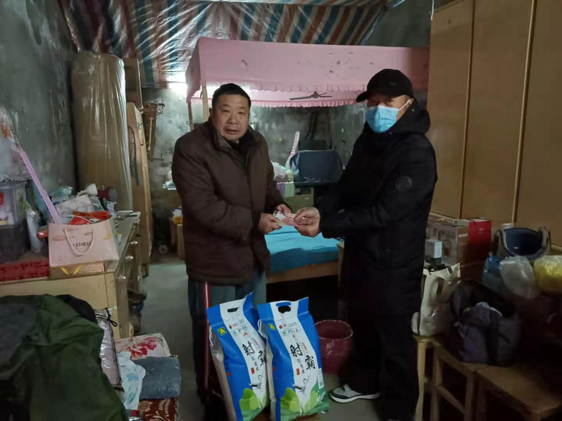 原來,家住城西振興小區做糧食生意的個體老板陸同聯特地在節日來臨之際,請城西居委會主任臧成龍代他向轄區貧困戶獻愛心。據悉,這也是陸同聯第五次給貧困職工送米送錢了。2018年2月12日,陸同聯隱姓埋名委托臧成龍為城西居委會建檔立卡貧困戶嚴建明和身患重病致貧的朱懷兵家各送上了1000元現金和2袋大米;2018年中秋節為這兩個特殊家庭各送去500元現金表愛心;2019年1月10日為這兩個特殊家庭各送去2袋大米和500元現金;2020年1月20日為這兩個特殊家庭各送去2袋大米和500元現金;而今年陸同聯再一次延續了去年的做法,委托臧成龍在節前為貧困職工表上心意。