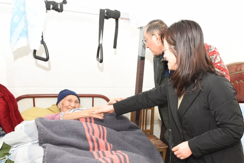 據(jù)了解,淮海現(xiàn)有775名80歲以上的高齡老人,對(duì)于高齡老人來(lái)說(shuō),健康更是安享晚年的基礎(chǔ),有著更重要的意義。近年來(lái),淮海積極打造健康文化,持續(xù)推進(jìn)健康行動(dòng),越來(lái)越多老年人能享受到農(nóng)場(chǎng)轉(zhuǎn)型發(fā)展成果,老年生活更有幸福感和獲得感。圖為農(nóng)場(chǎng)工會(huì)和民政負(fù)責(zé)人在百歲老人家進(jìn)行慰問(wèn)時(shí)的鏡頭。