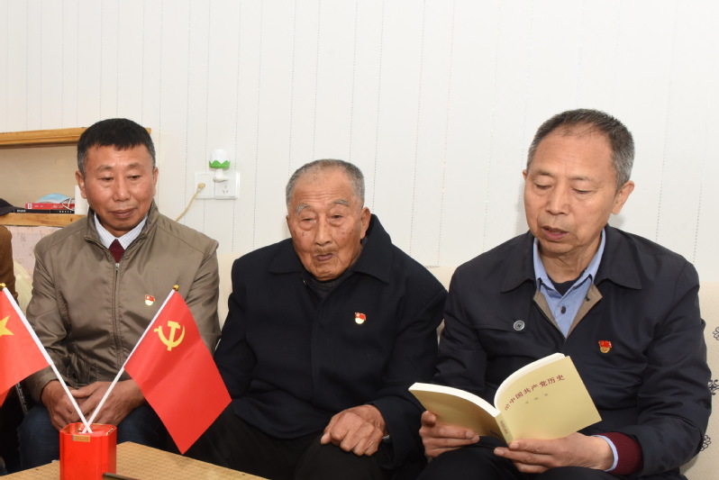 這堂特殊的黨課,讓家庭黨員們再一次感受到這位老共產黨員的初心和使命,同時后輩的黨員也在向老人送、讀黨史書籍、講述新中國的快速發展和淮海農場及至家庭中,呈現出一個又一個的新變化時,張國裕老人聽了笑臉如花般地豎起大姆指連聲說“好、好、好!”