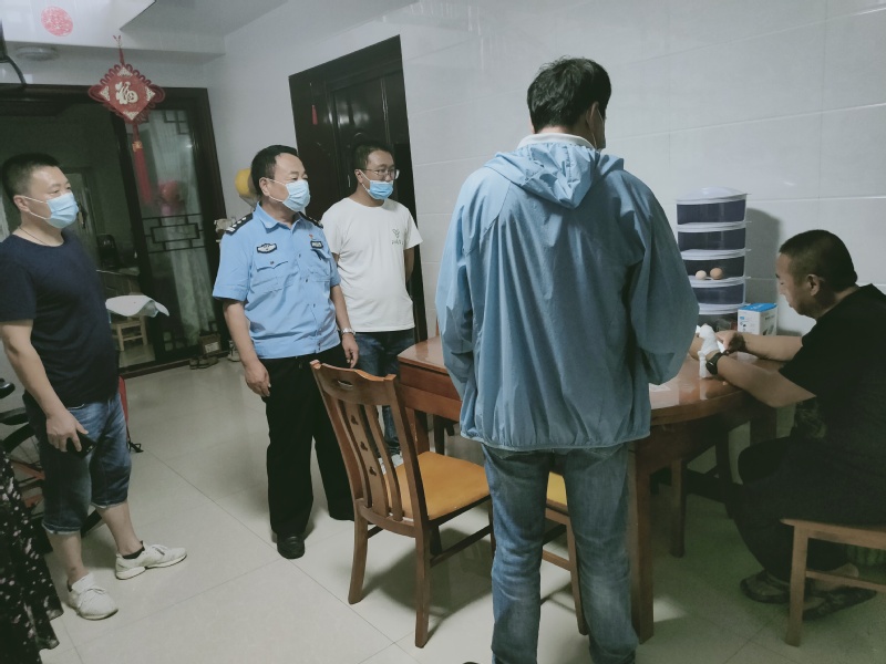 由社區工作人員、醫生、民警等組成的五人小組,上門仔細排查從南京返場人員,核實相關信息,做好登記等工作,并叮囑居民出門戴口罩,注意個人衛生等。