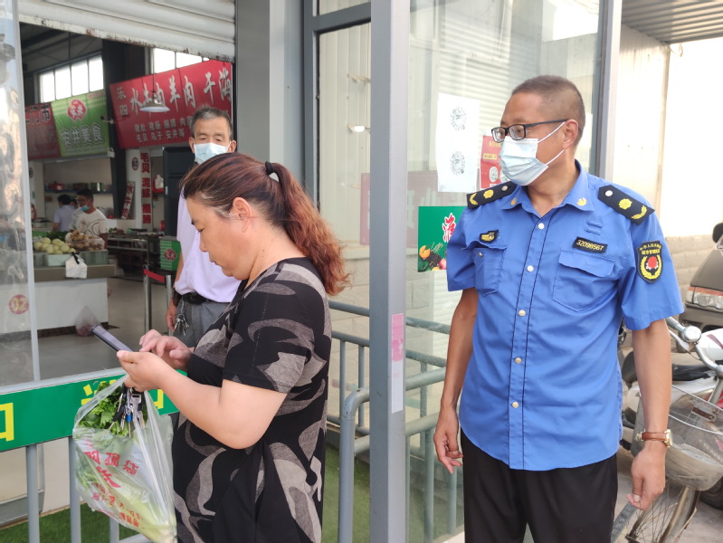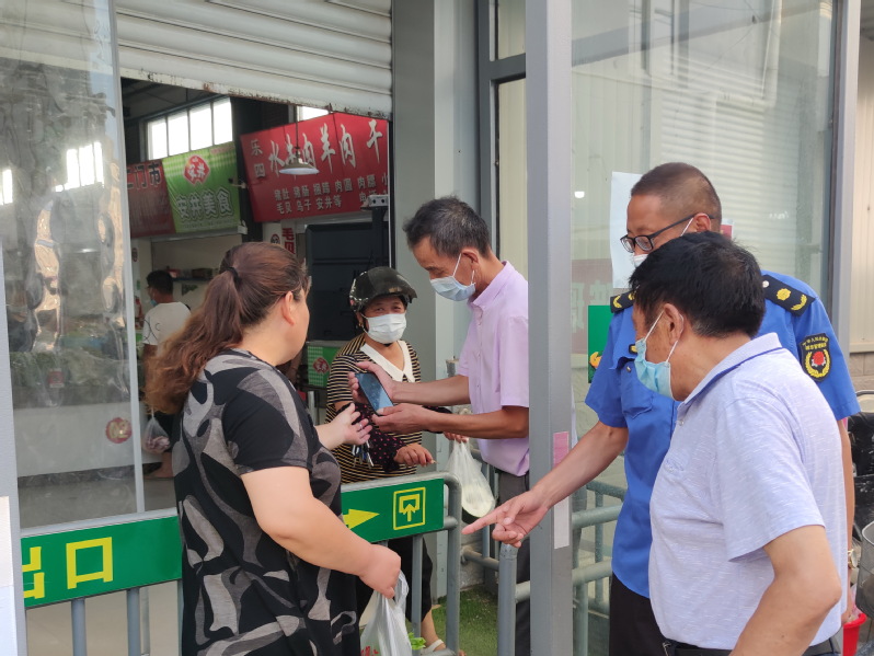 “還請(qǐng)你輸入下密碼。”說著,曹習(xí)生將手機(jī)遞到了買菜的居民手中。整個(gè)過程僅幾分鐘光景,就化解了居民沒戴口罩進(jìn)出菜市場的難題。