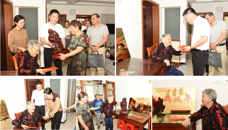 9月10日上午,淮海農場有限公司副總經理、工會主席戴學林和部門相關人員及社區民政部門人員一起,來到位于五岸新村的邱鳳英的家中,帶著慰問品和慰問金,并代表農場公司黨委,向剛剛達到百歲的邱鳳英老人祝賀百歲生日,并向老人表示衷心的祝福和美好的祝愿。