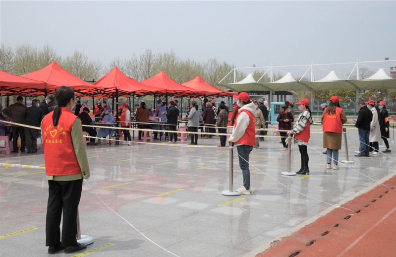 連日來,在淮海農場職工休閑體育運動廣場和農場文化廣場上,隨處可見一抹“志愿紅”,他們當中,有的手持小喇叭,一遍又一遍重復著“佩戴好口罩,保持好距離”的話語;有的人手一把測溫槍,堅守在卡口點不厭其煩地測量著經過人的體溫;有的前后跑動著,為老年人、殘疾人提供便民服務;有的變身“大白”“淺藍”,為核酸檢測采樣前進行掃碼登記工作……