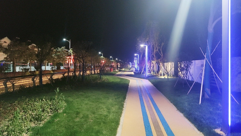 “沒想到農(nóng)場也建起了健身步道,而且步道兩側(cè)還栽種了許多綠化苗木和花草,還配置了許多景觀小品、休息坐椅、親水平臺(tái),生活在農(nóng)場真是太幸福了。”居住在農(nóng)場神禾路別墅區(qū)的張老漢望著河對(duì)岸清新的環(huán)境感慨地說道,“沒建這個(gè)步道前,其間要么是堆積的雜物、雞鴨棚或是種植的莊稼,破敗的狀況讓人不忍直視。現(xiàn)在好啦,新砌的圍墻將步道與居住區(qū)隔開,道路是彩色道路,兩邊還裝了別致的路燈,不同的樹木自成一體,大家茶余飯后就可以在步道上邊散步邊聊天了。”