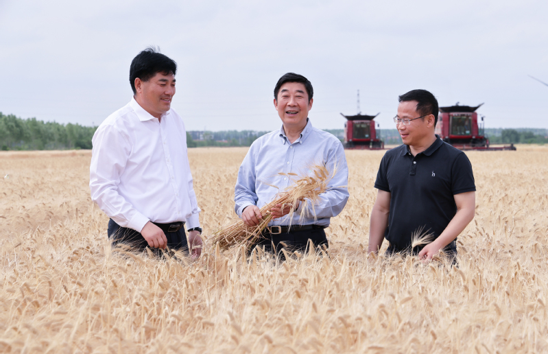 胡兆輝首先考察了大麥?zhǔn)崭瞵F(xiàn)場(chǎng)以及小麥、油菜長(zhǎng)勢(shì)情況,他指出,糧食安全是“國(guó)之大者”,要深刻認(rèn)識(shí)國(guó)家實(shí)施糧食安全戰(zhàn)略的重要性和必要性,切實(shí)扛起保障糧食安全“國(guó)家隊(duì)”的職責(zé)使命。新洋夏熟“三大作物”大麥、小麥和油菜長(zhǎng)勢(shì)喜人、豐收在望,“豐產(chǎn)、豐收、增效”要素集聚、優(yōu)勢(shì)凸顯,要搶抓當(dāng)前晴好天氣、借勢(shì)當(dāng)前利好局面,乘勝追擊、穩(wěn)扎穩(wěn)打,在夏收、夏種、夏管等關(guān)鍵技術(shù)措施上下足功夫,質(zhì)量并舉確保夏糧顆粒歸倉(cāng),精細(xì)管理力促水稻穩(wěn)產(chǎn)高產(chǎn),誓奪“三夏”工作全面勝利,為蘇墾農(nóng)發(fā)股份公司和集團(tuán)公司作貢獻(xiàn)。