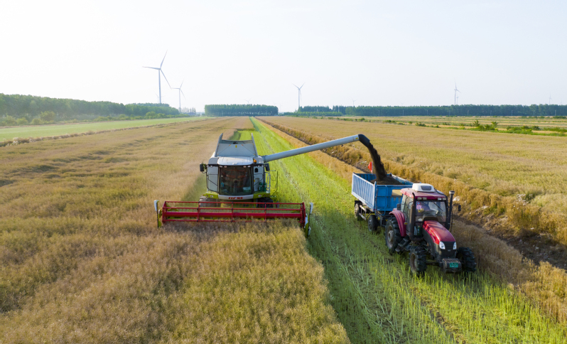 滾滾麥浪閃金光,粒粒飽滿豐收時。眼下,新洋油菜、小麥相繼進入成熟收獲期。伴隨著機器轟鳴聲,一臺臺聯(lián)合收割機正“趟開”麥浪、油菜田塊來回收割,一排排小麥和油菜被卷入機器脫粒歸倉,一幅“夏忙豐收圖”在新洋大地徐徐展開。