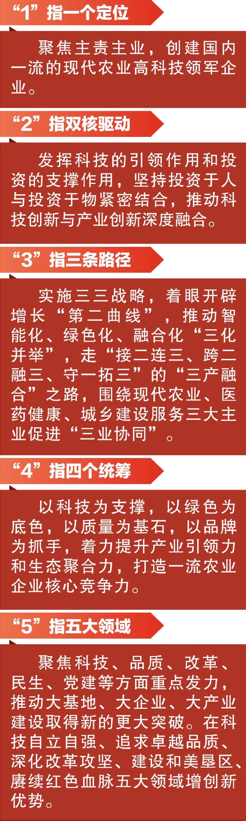 集團(tuán)“十五五”發(fā)展總體要求是:堅持以習(xí)近平新時代中國特色社會主義思想為指導(dǎo),深入學(xué)習(xí)貫徹習(xí)近平總書記系列重要講話重要指示,尤其是關(guān)于江蘇工作、“三農(nóng)”工作、國企工作的重要論述,認(rèn)真落實省委省政府決策部署,扛牢“示范區(qū)、國家隊、排頭兵”的職責(zé)使命,緊扣“爭當(dāng)表率、爭做示范、走在前列”的總體目標(biāo),聚焦現(xiàn)代農(nóng)業(yè)、醫(yī)藥健康、城鄉(xiāng)建設(shè)服務(wù)主業(yè),堅持“智能化、綠色化、融合化”發(fā)展方向,形成產(chǎn)業(yè)鏈縱向延伸、橫向拓展、產(chǎn)融結(jié)合、多元集成的發(fā)展格局,加快建設(shè)一流企業(yè),在“強富美高”新江蘇現(xiàn)代化建設(shè)中展現(xiàn)更大擔(dān)當(dāng)。